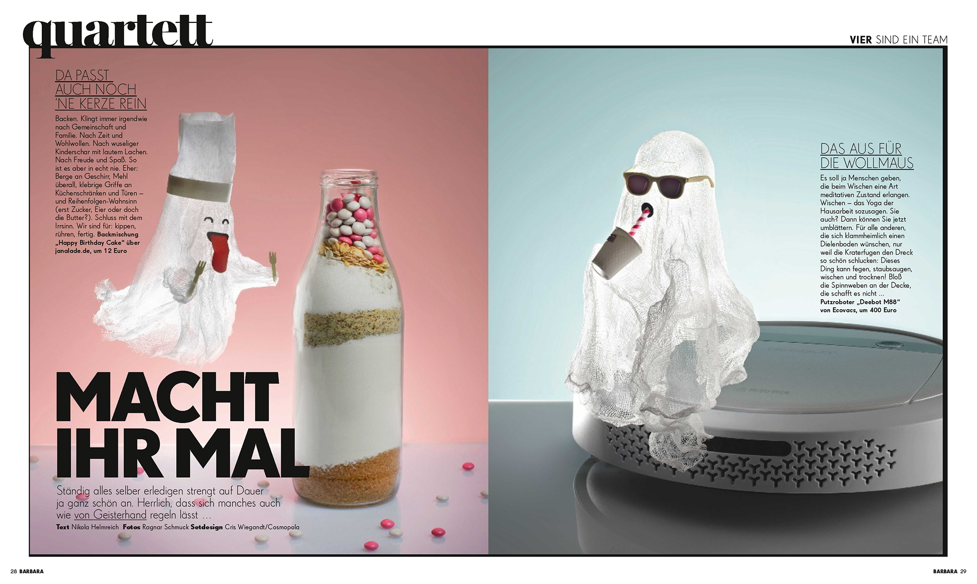 For this project, the photographer Ragnar Schmuck asked me to craft little ghosts with big personalities. I made them from bandages and glue and lit them to create the perfect spooky glow.