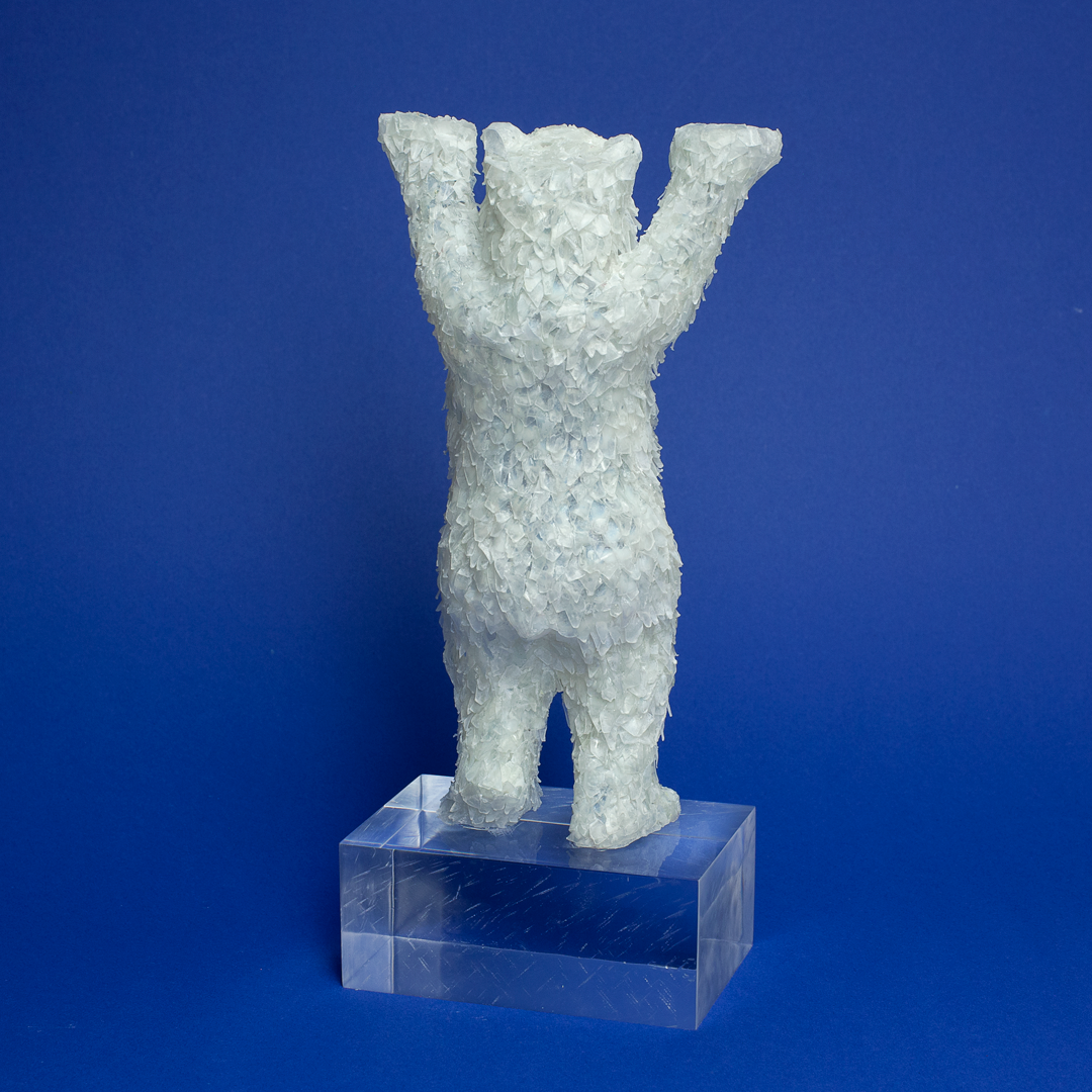 Veolia Germany has commissioned me to create a Berliner Bear sculpture out of recycled plastic flakes - as a gift for a co-worker. This sounds easy, but the challenge was, which glue holds it all together? Not every glue: works with different types of plastic (especially recycled ones), dries fast, stays transparent and is easy to use.