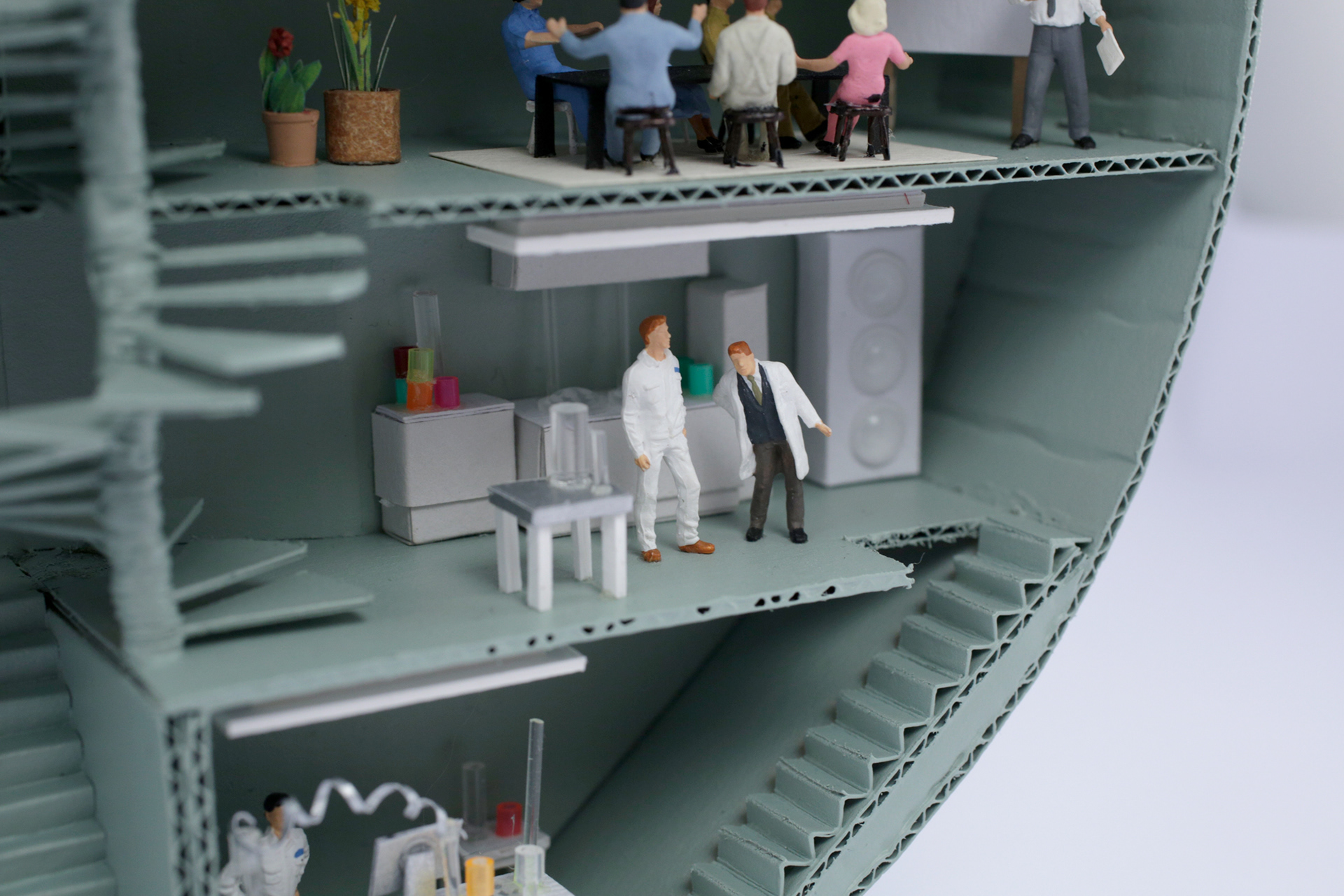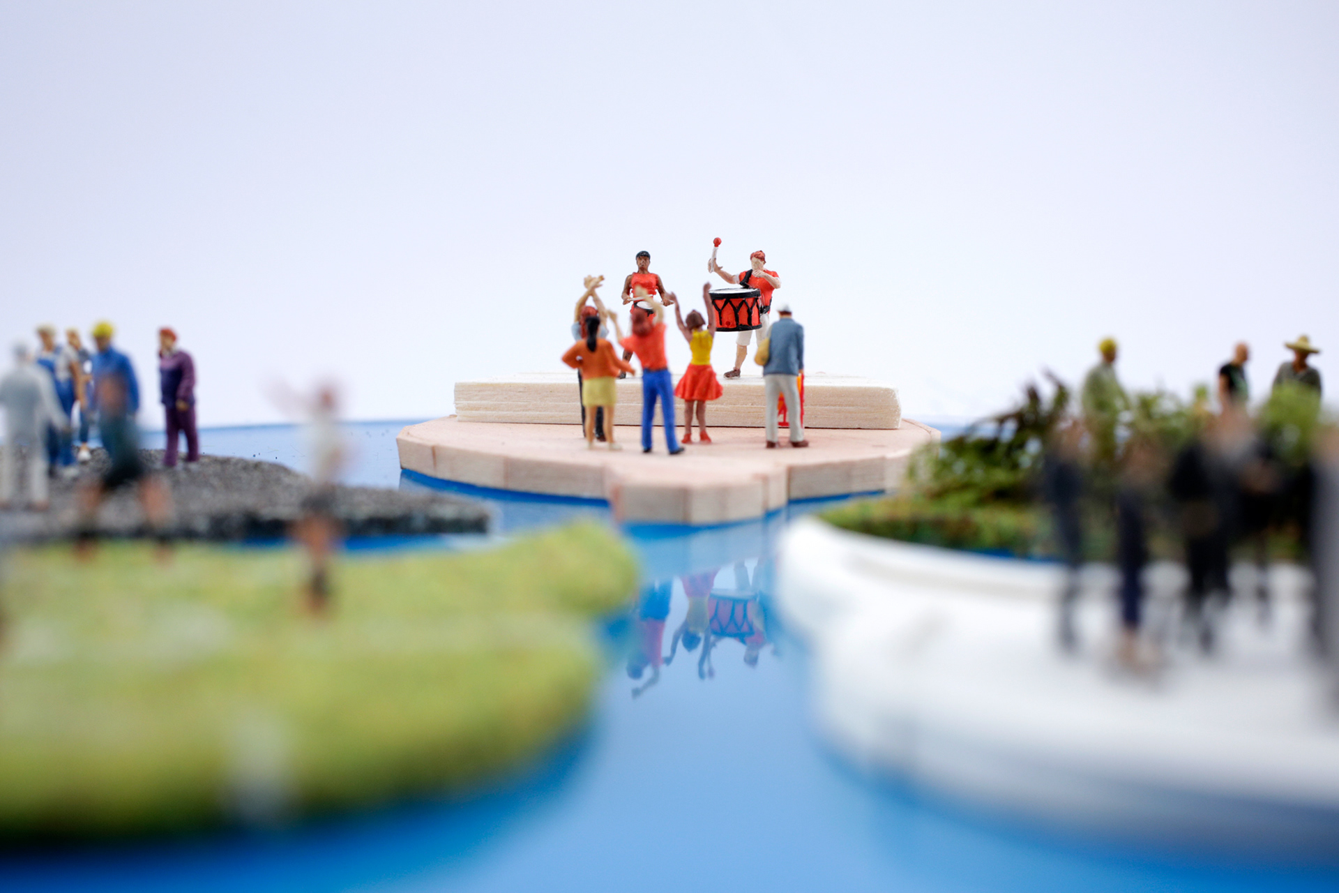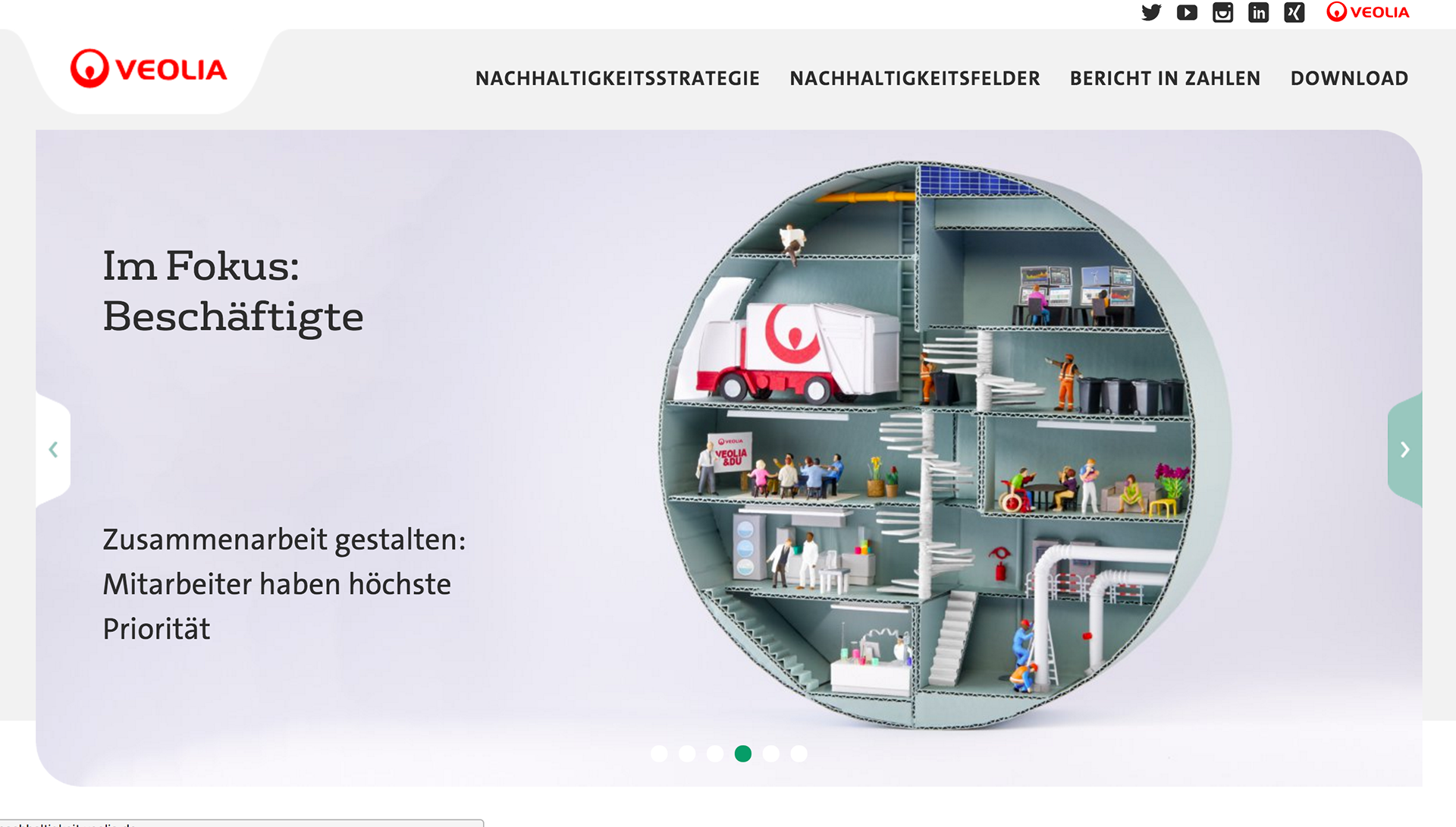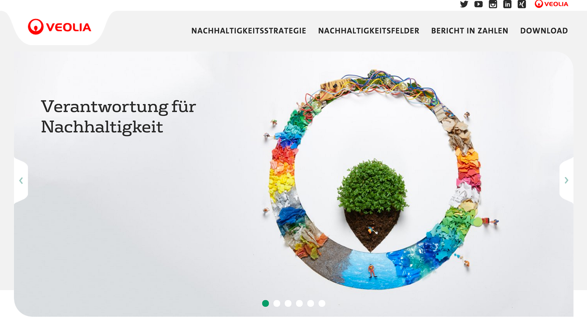 Using tangles of cables, shards of rainbow colored glass, scraps of paper, plastic pieces and even real garden cress, I created five contrasting scenes that show how Veolia turn trash into treasure – all populated by miniature Veolia employees hard at work. Every individual craft echoes the round shape of the Veolia logo, while distinctly demonstrating different aspects of their work, what Veolia stands for and what they do as a recycling company – for the environment, for their own workers and for society as a whole.