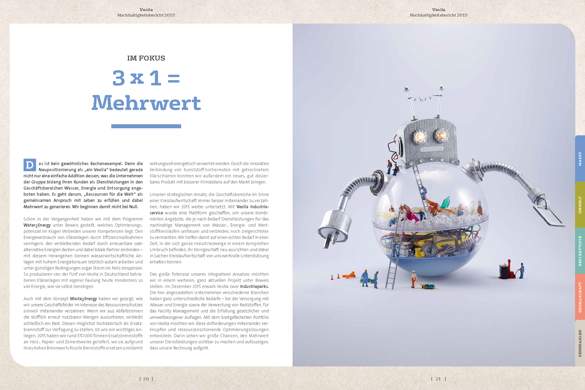 For this project the design agency J V-FORMATION asked me to conceptualize and create five crafts for the Veolia Sustainability Report 2015 using real recycled materials – in other words, I was given the job of making garbage look good.